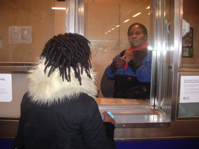 As patriots on the front-lines, we armed ourselves with cameras and other equipment and rushed to the scene to investigate. When we arrived, we found Winnie Mukaru arguing with the ticket attendant after making her way back to the station following her violent eviction from the scene by guards moments earlier. She was making a second attempt to get her ticket stamped so that she could travel. Apparently, the attendant was an African woman reportedly from Uganda. By the time we arrived, the guards had left.