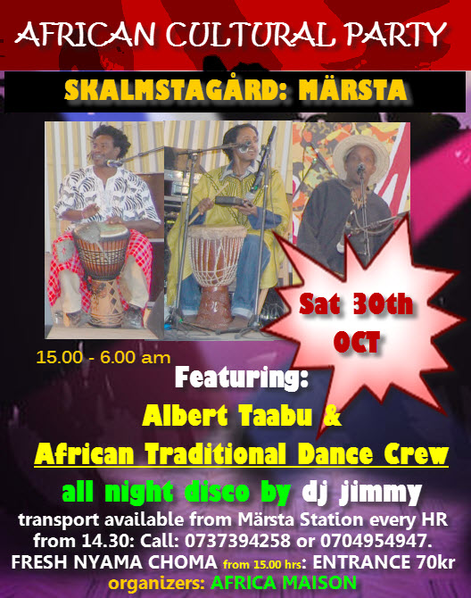 News & Analysis Africa Cultural Party in Märsta Makozewe October 19, 2010 1 min read Share this:Share Share on Facebook (Opens in new window) Facebook Share on X (Opens in new window) X Email a link to a friend (Opens in new window) Email Print (Opens in new window) Print Share on Reddit (Opens in new window) Reddit About the Author Makozewe Administrator A blog for News and Events happening around Kenyans in Stockholm. Visit Website View All Posts Like this:Like Loading... Related Continue Reading Previous: Celebrating “Mashujaa Day” for the First TimeNext: Yardie Vibes Sensation Continues at Ritz Night Club: 23rd Oct Leave a ReplyCancel reply Related News 5 min read News & Analysis Kakamega at the Brink: The Linda Wananchi Rally and the Ruthless Geometry of Power Makozewe February 21, 2026 4 min read Debate News & Analysis The Point of No Return: The Specific ODM Events and Statements That Sealed Edwin Sifuna’s Political Fate Makozewe February 12, 2026 2 min read Bereavements News & Analysis From Diaspora Dreams to Final Rest: Standing With Ken Njau in His Final Journey Makozewe February 5, 2026